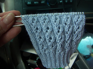 Ken's off on a fishing trip this weekend. Nate and Kelly have gymnastics, Kelly's got soccer. I promised to take Skip to a brass quintet jazz concert on Saturday. And Skip's got a track meet... there's just oodles of opportunities to put mileage on a new pair of socks. If all the carpooling driving doesn't kill me first.